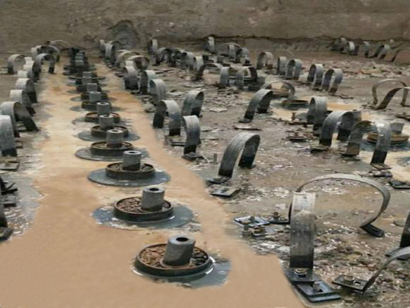濾磚:采用混凝土澆筑而成外部HDPE(高密度聚乙烯)外殼,“T”型氣水分布濾磚,提供反沖洗氣水分配性能。